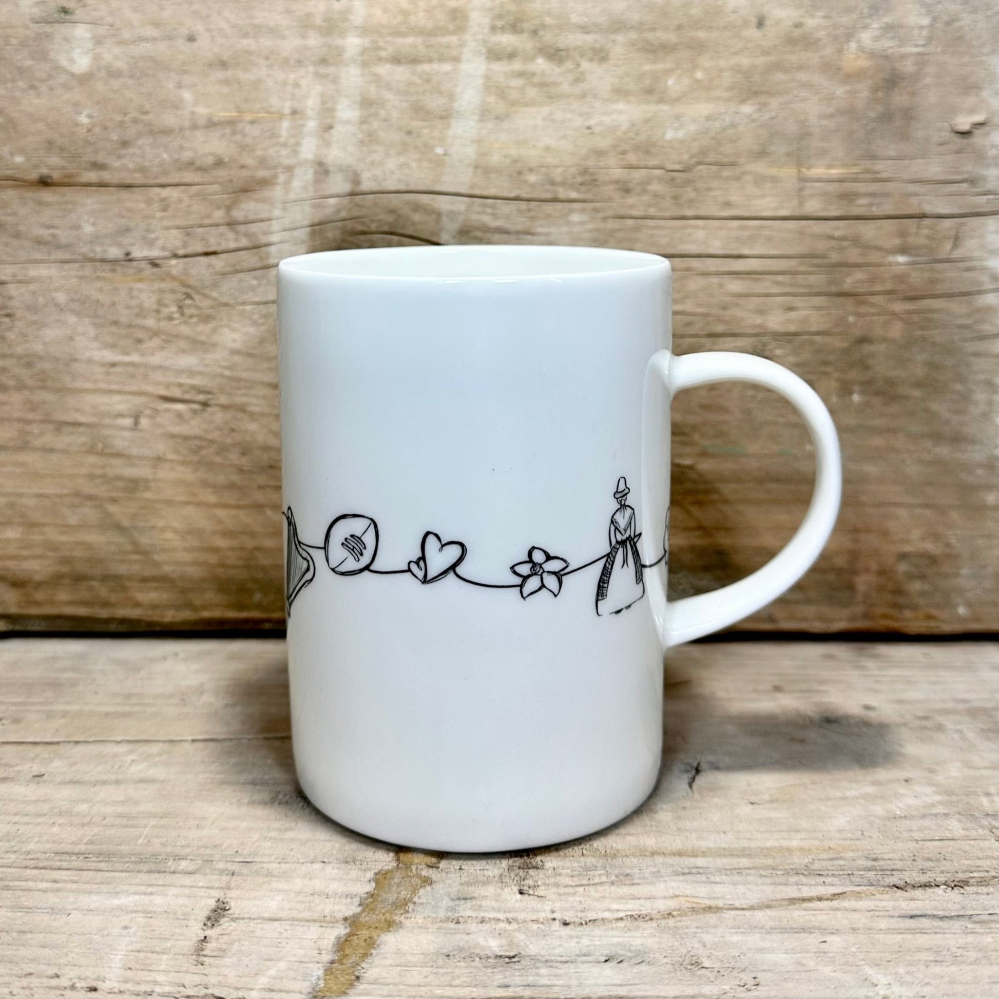 These Welsh Charms mugs come in four sizes: Extra small, small, medium and tall, each featuring intricate Welsh designs. Perfect for any occasion, they add a touch of tradition and style to your tea or coffee break.